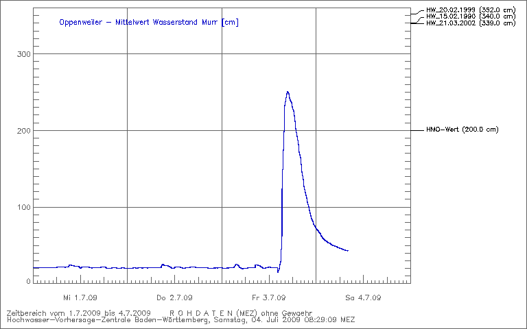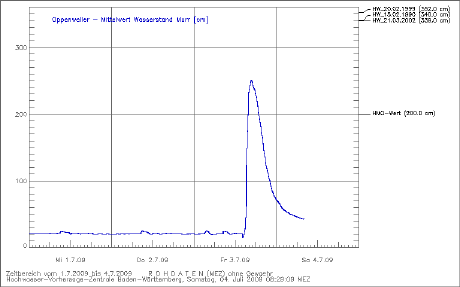 Das Hochwasser vom 03.07.2009 als Ganglinie und einige Bilder nach der Flut